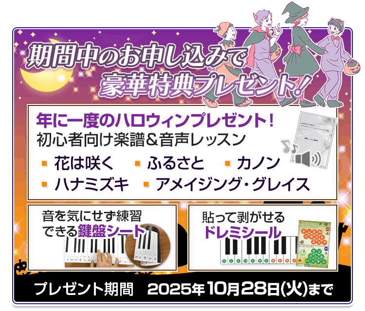 今だけ本編とは別に追加で初心者のための豪華なプレゼントが付いてきます。プレゼントはピアノを初めて弾く人にとっても役に立つものばかりです。